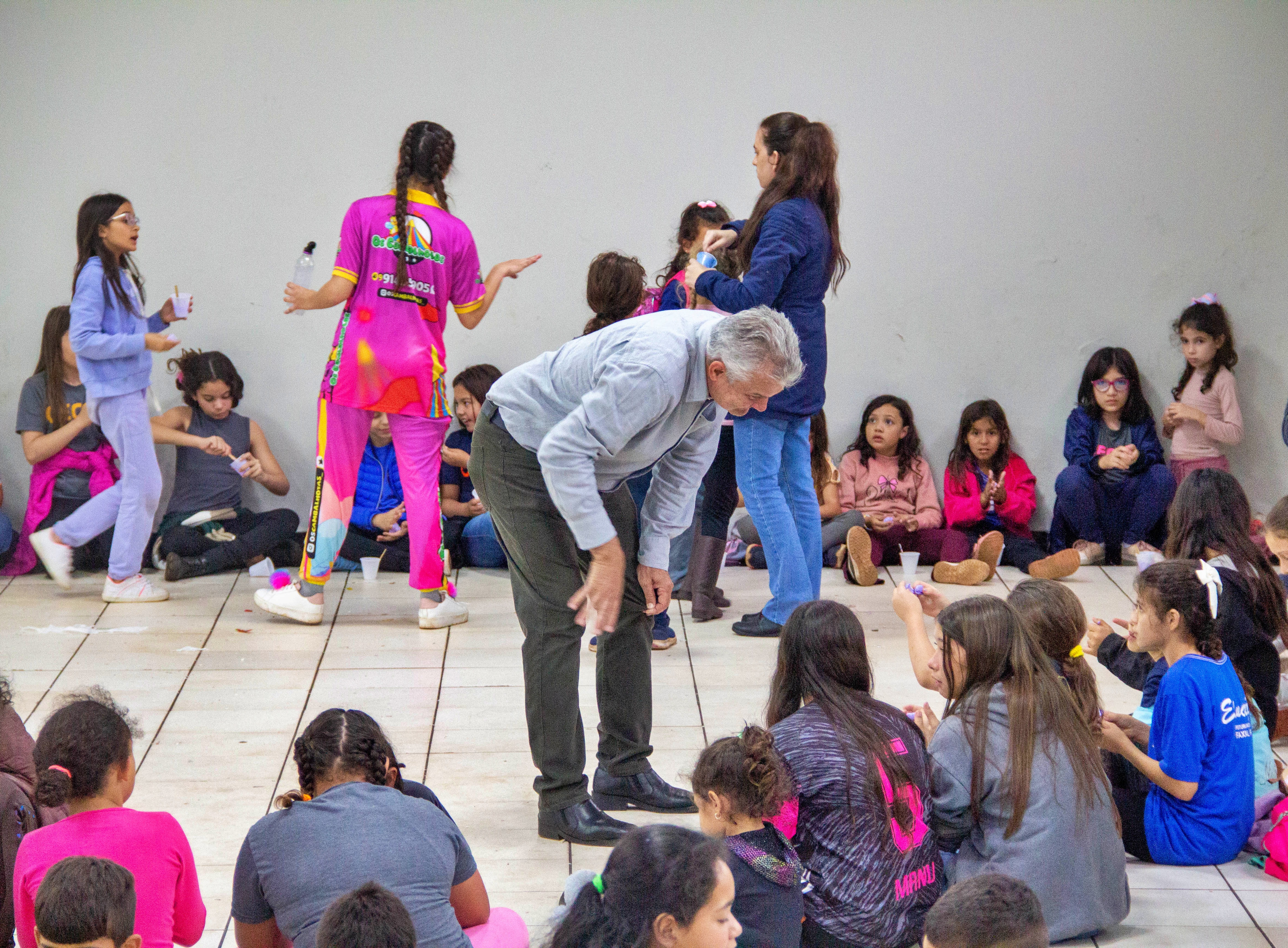 As atrações incluíram brincadeiras animadas conduzidas pelos "Cambalhotas", que trouxeram sorrisos e uma energia contagiante ao ambiente, transformando a festividade em um grande sucesso. As crianças puderam desfrutar de momentos de interação e descontração, promovendo não apenas a diversão, mas também a socialização entre elas.
