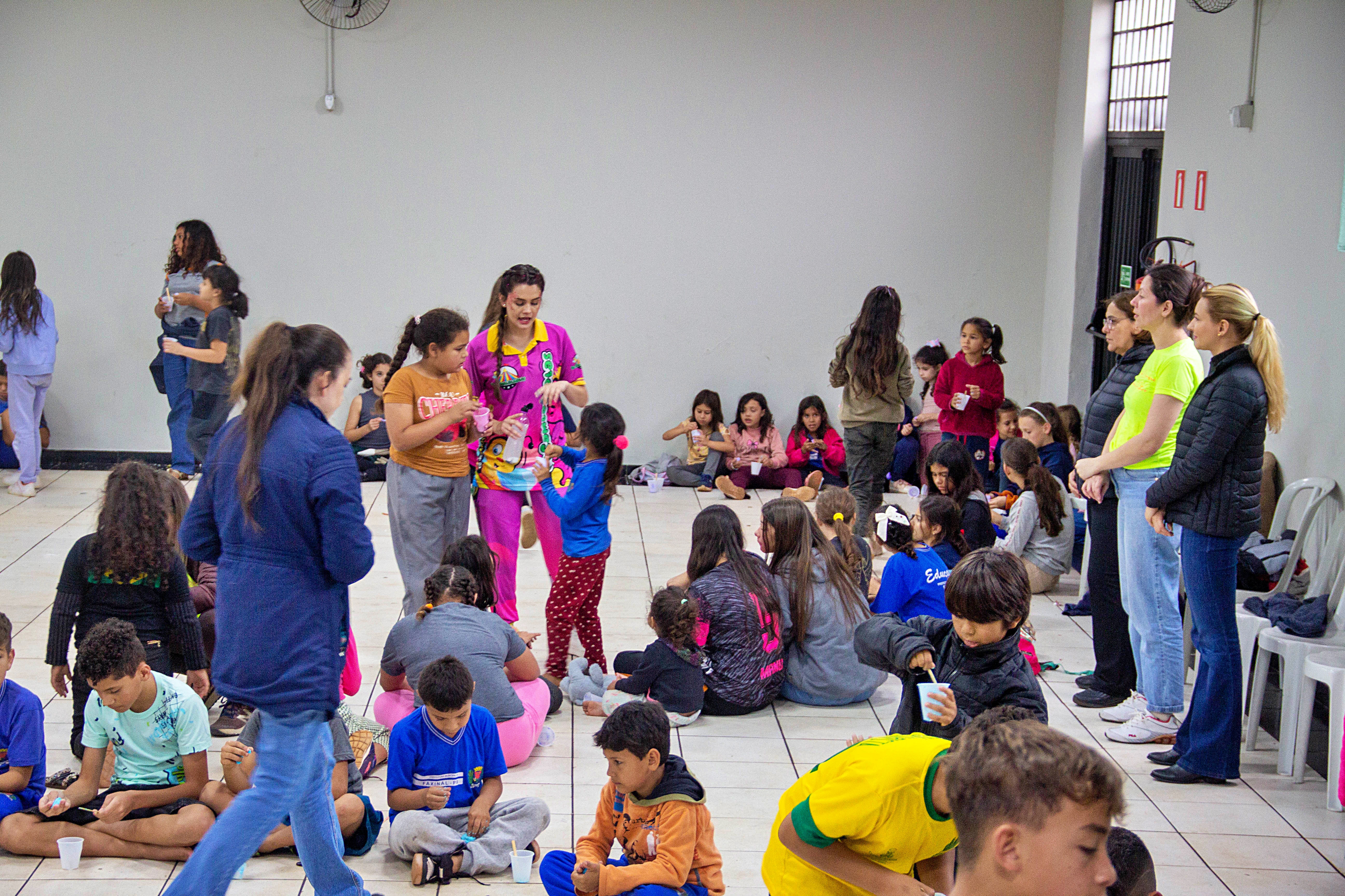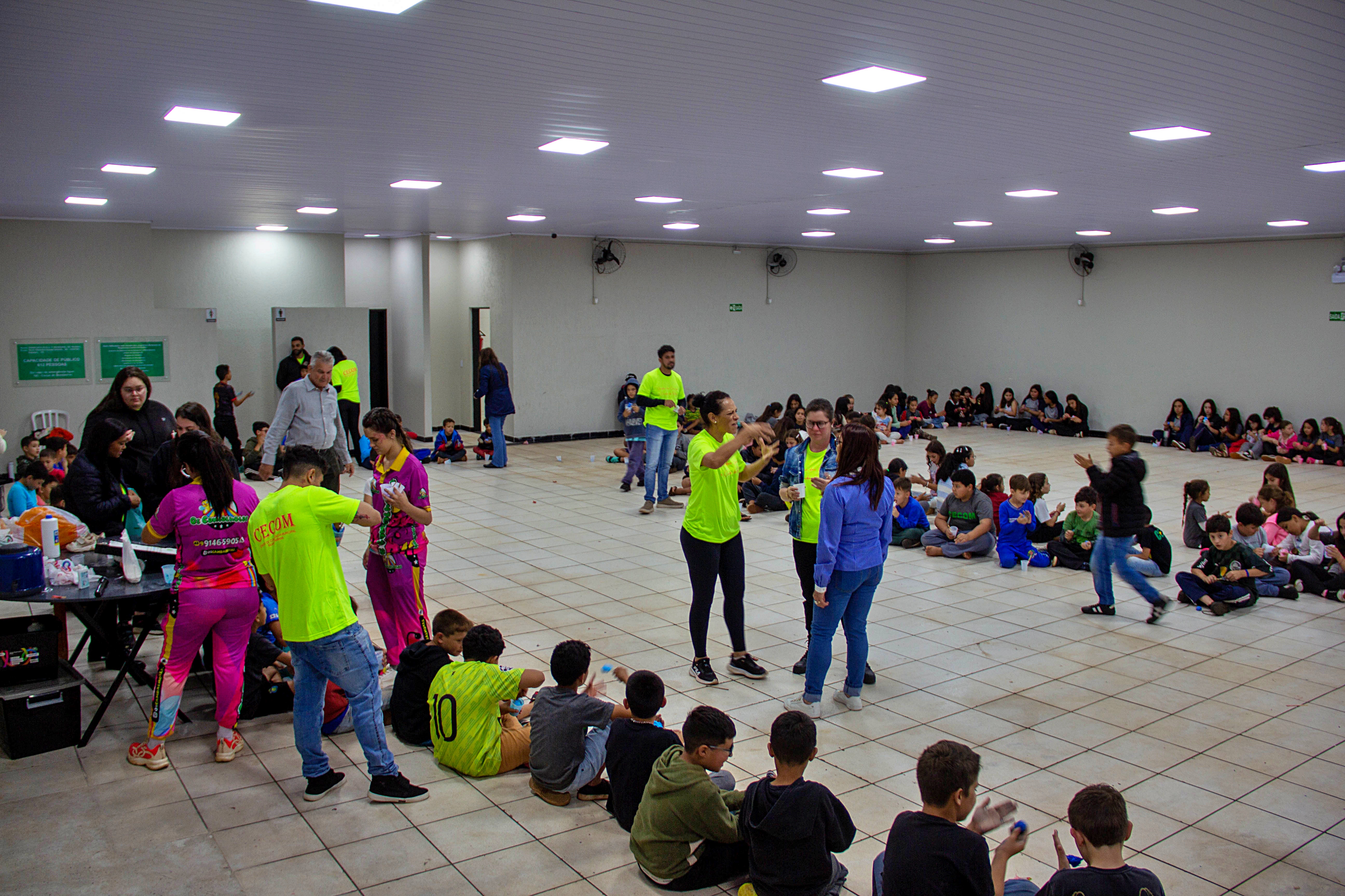 Na última quarta-feira (08), o Centro de Convivência Municipal de Faxinal (Cecom) organizou uma programação especial em homenagem à Semana da Criança. O evento, que por motivo de chuva foi realizado no salão do Sindicato dos Servidores Públicos foi um verdadeiro deleite para os pequenos, oferecendo uma variedade de atividades lúdicas que garantiram diversão e alegria.