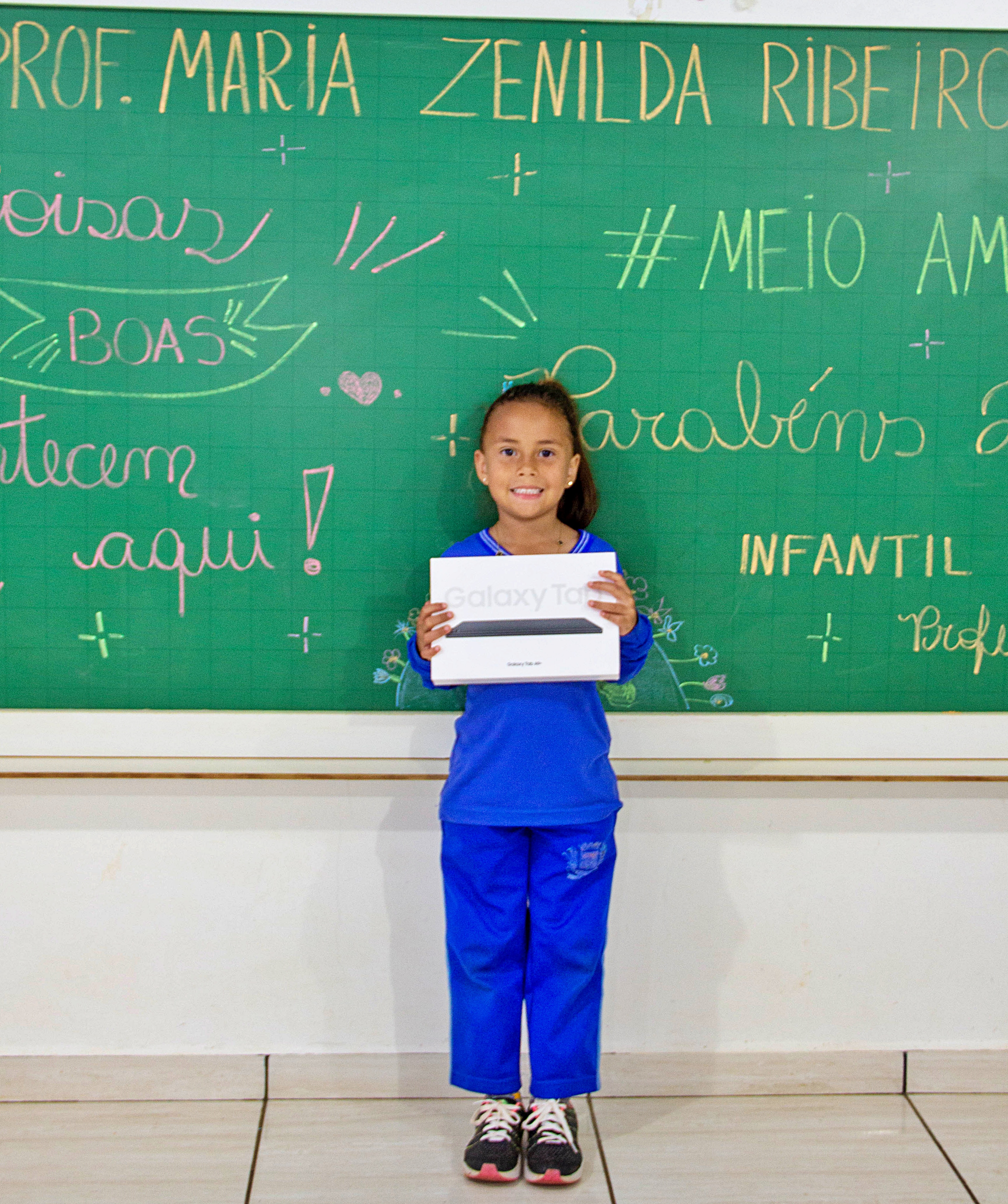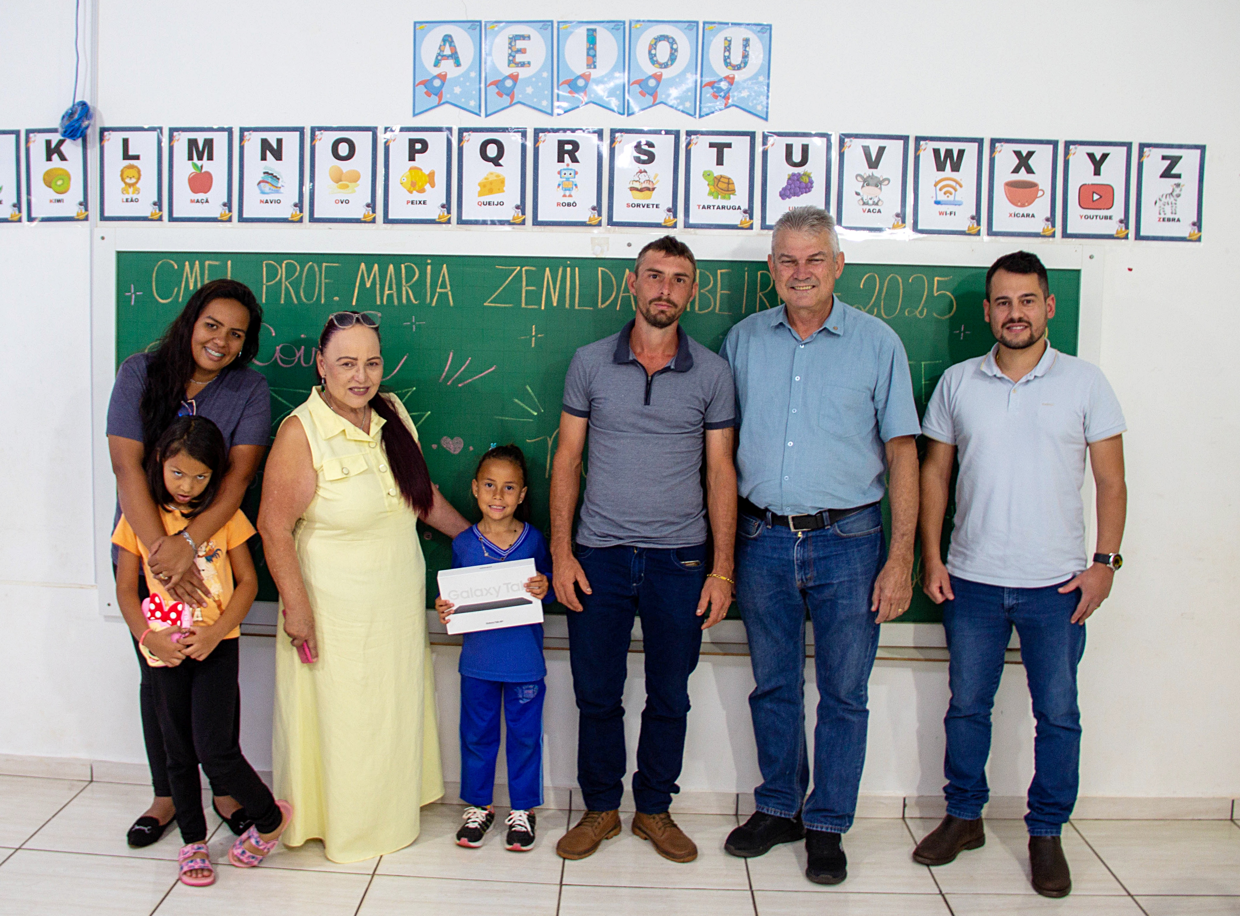 Os vencedores do concurso de criação do mascote do projeto foram os alunos João Gustavo Antunes de Godoi, do 5º Ano B da Escola Municipal Tancredo Neves, e Laís, do CMEI Maria Zenilda Ribeiro. Ambos foram agraciados com um tablet Galaxy Tab A9+ como reconhecimento pela criatividade.