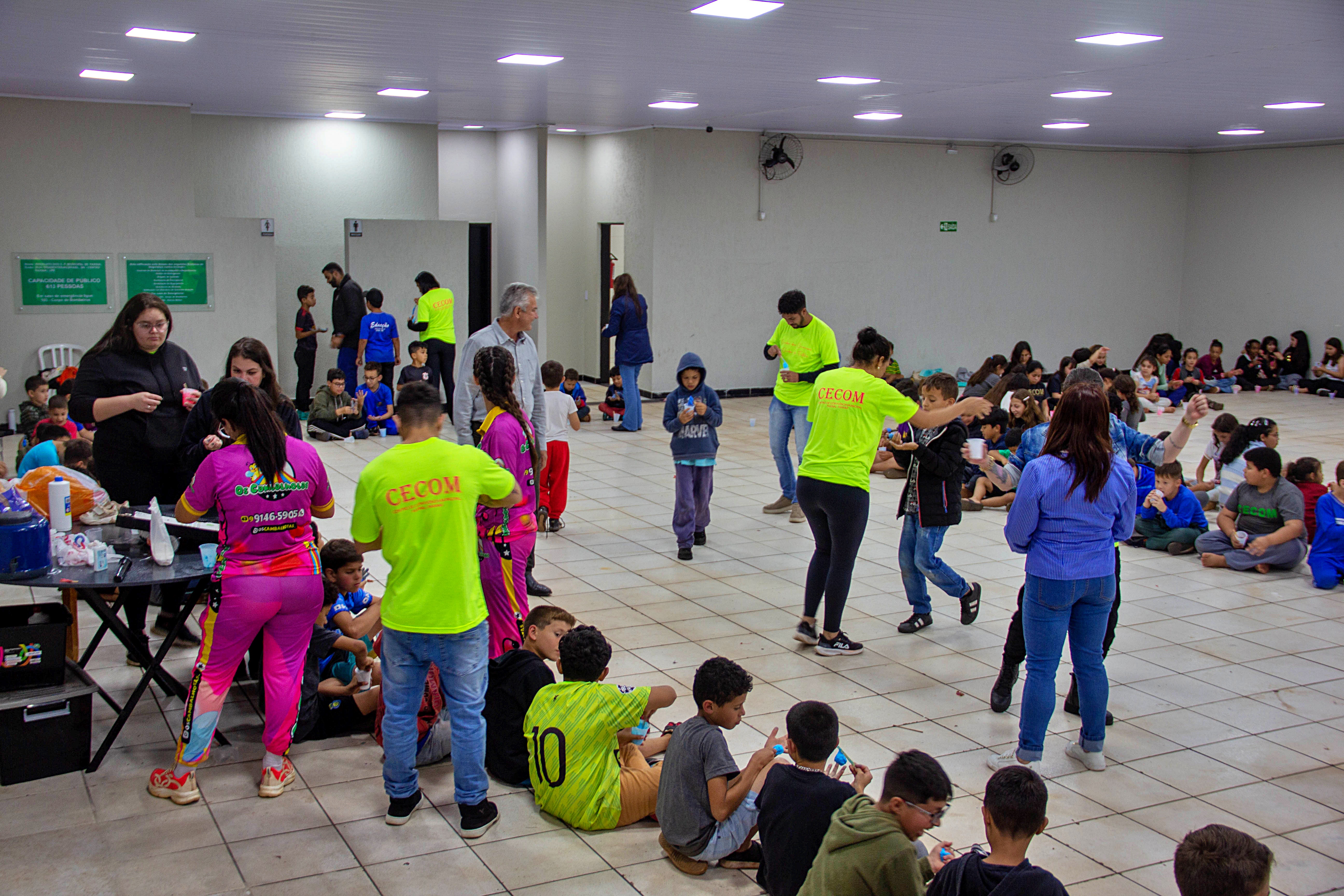 Na última quarta-feira (08), o Centro de Convivência Municipal de Faxinal (Cecom) organizou uma programação especial em homenagem à Semana da Criança. O evento, que por motivo de chuva foi realizado no salão do Sindicato dos Servidores Públicos foi um verdadeiro deleite para os pequenos, oferecendo uma variedade de atividades lúdicas que garantiram diversão e alegria.