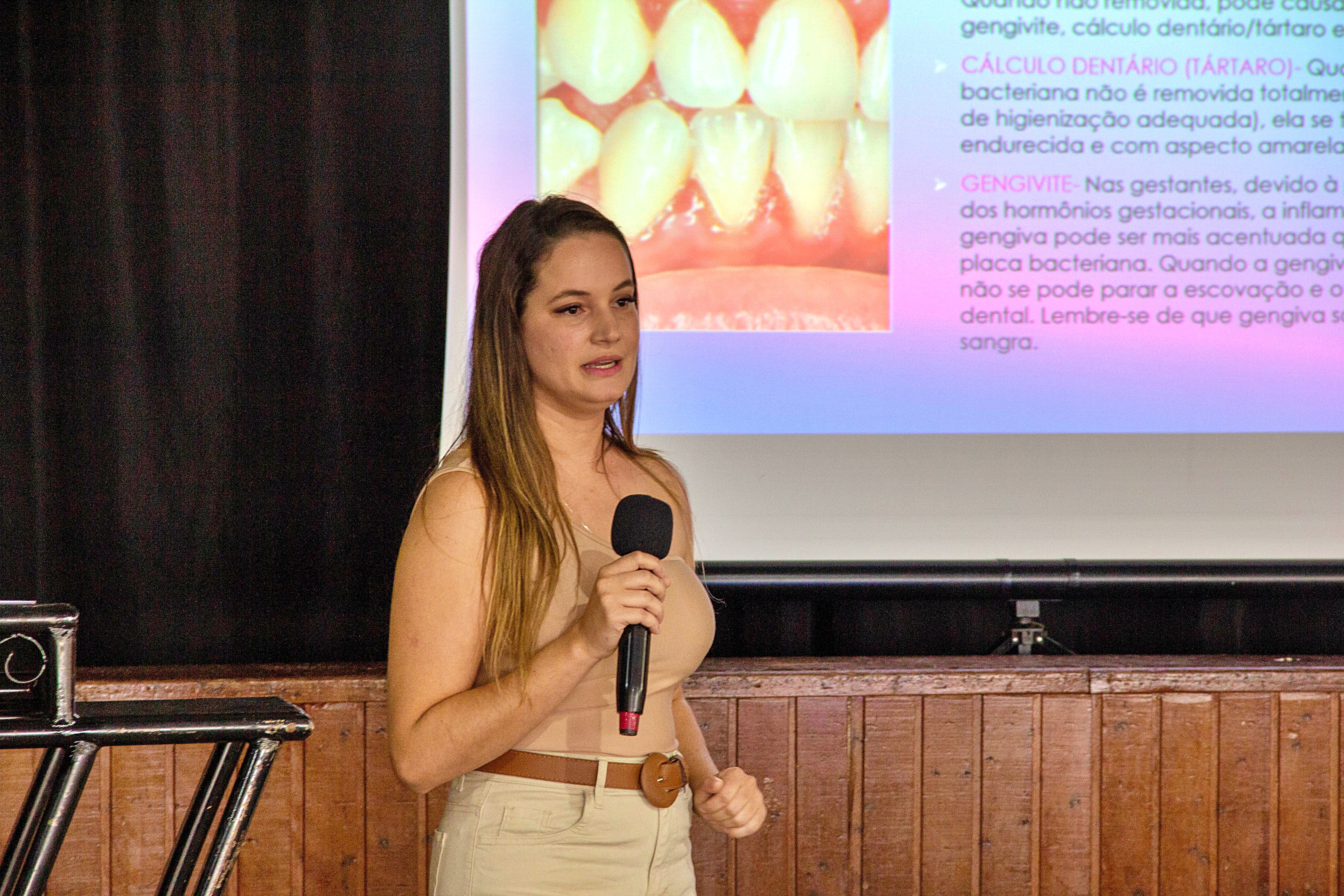 Com ênfase no Pré-Natal Odontológico, as participantes tiveram a oportunidade de esclarecer dúvidas com a Dra. Hemilly, cirurgiã dentista, que destacou a relevância da saúde bucal durante a gestação, garantindo bem-estar tanto para as mães quanto para os bebês. A interação entre as gestantes favoreceu um clima leve e descontraído, permitindo que compartilhassem suas experiências e se sentissem acolhidas por mulheres que também estão vivendo essa fase única da vida.
