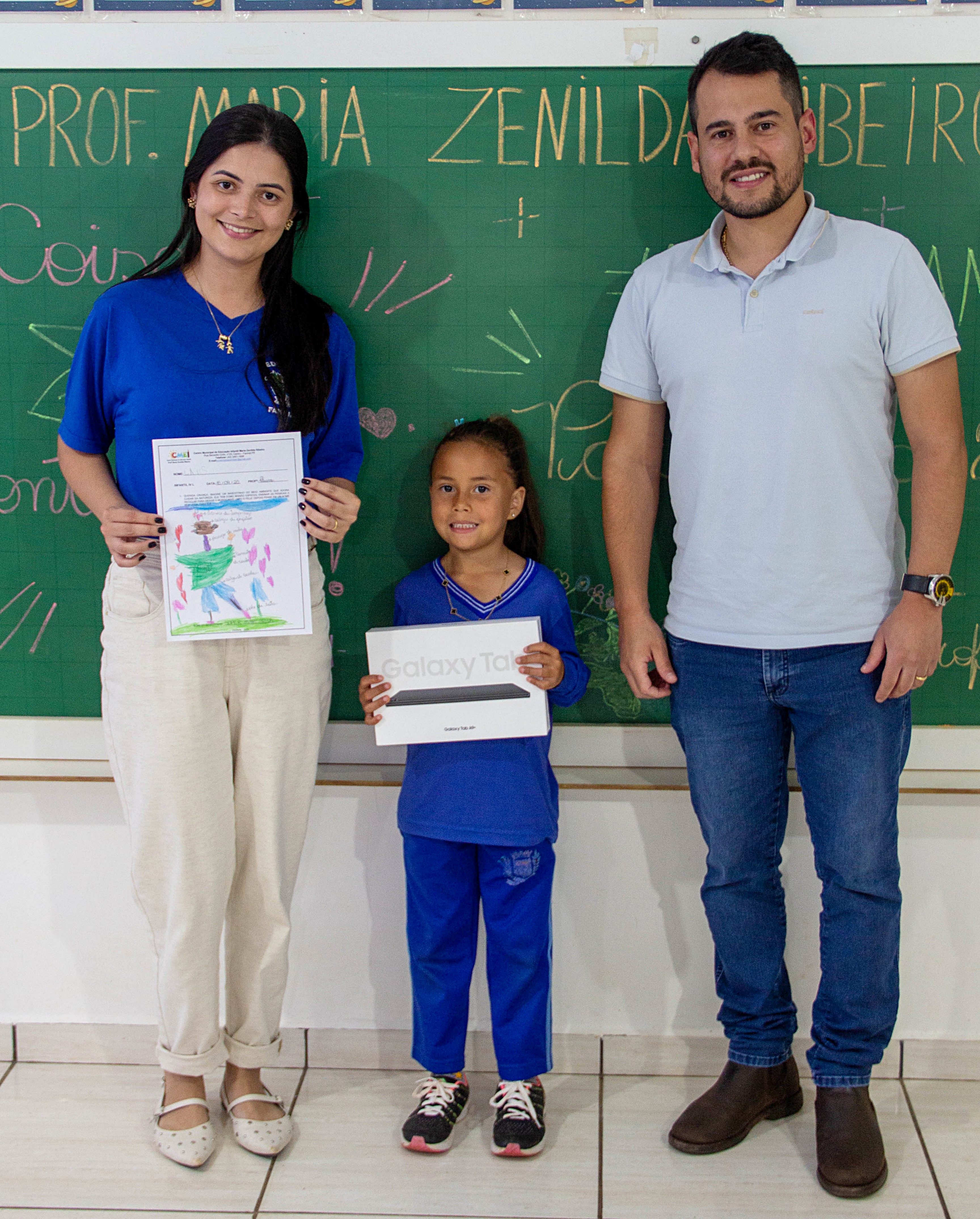 Os vencedores do concurso de criação do mascote do projeto foram os alunos João Gustavo Antunes de Godoi, do 5º Ano B da Escola Municipal Tancredo Neves, e Laís, do CMEI Maria Zenilda Ribeiro. Ambos foram agraciados com um tablet Galaxy Tab A9+ como reconhecimento pela criatividade.